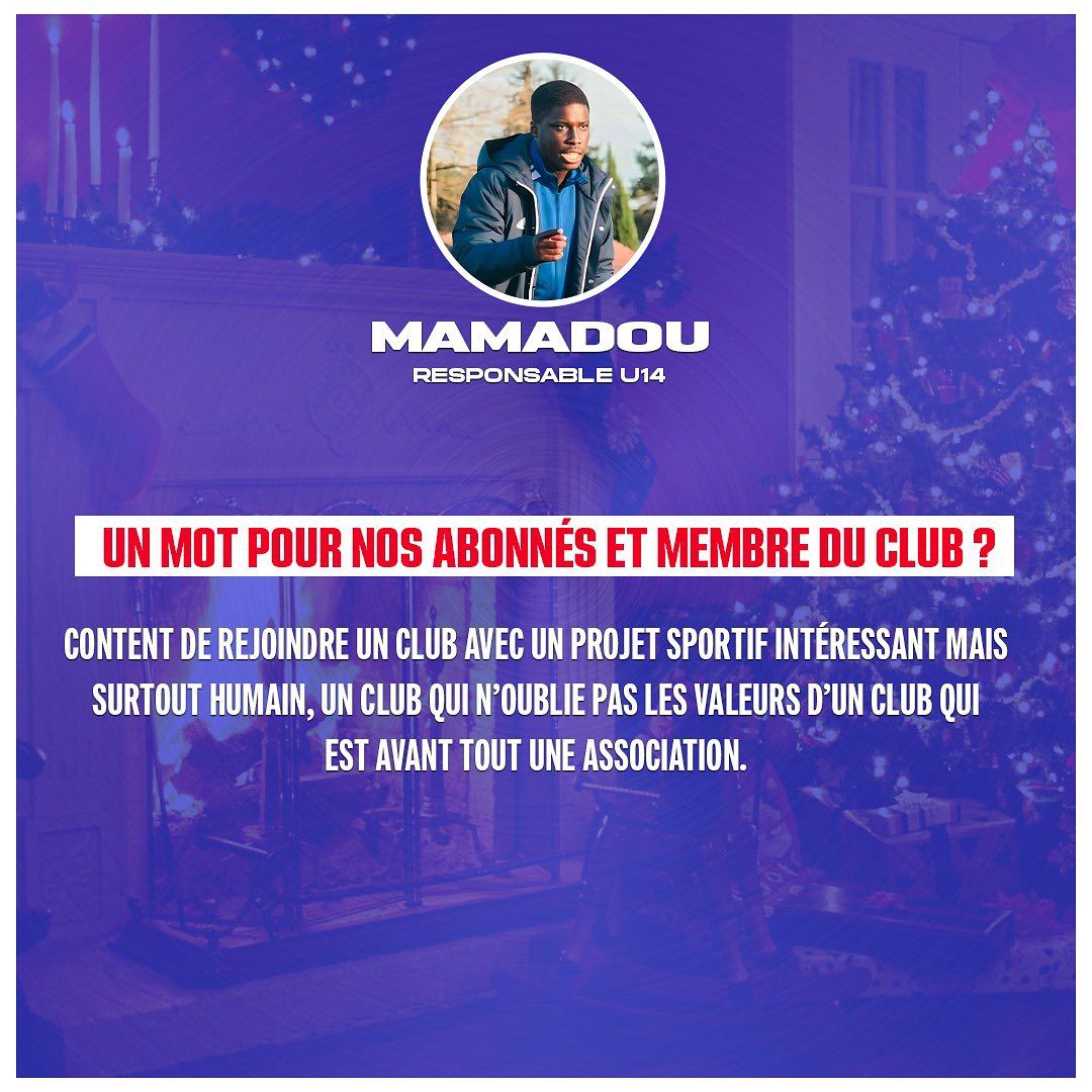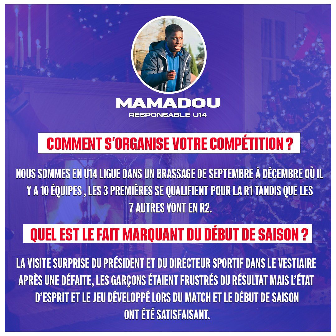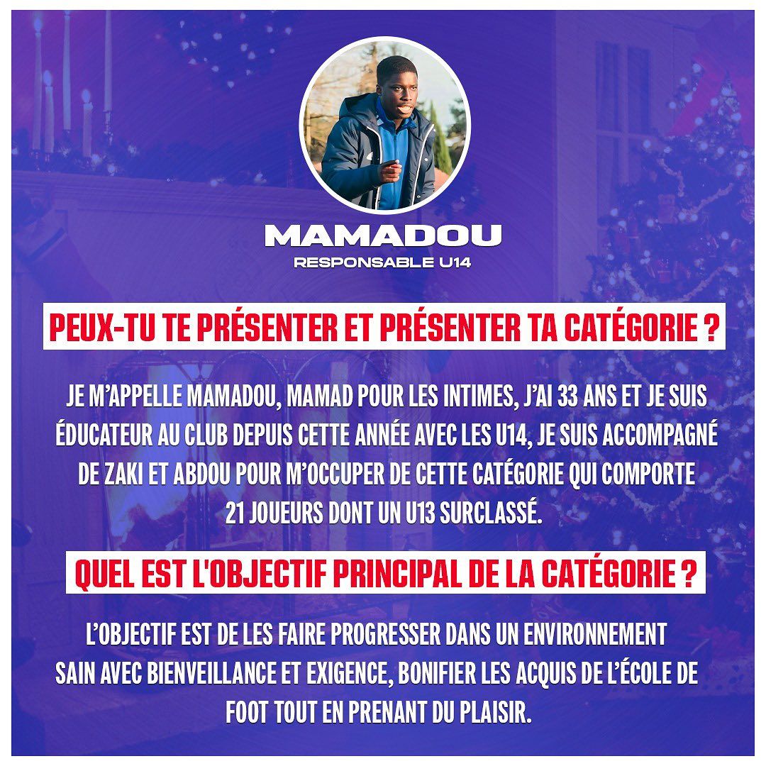 Pour ce jour 12 du calendrier de lโavent, cโest notre responsable U14 Mamadou NDAW qui rรฉpondra ร nos questions !