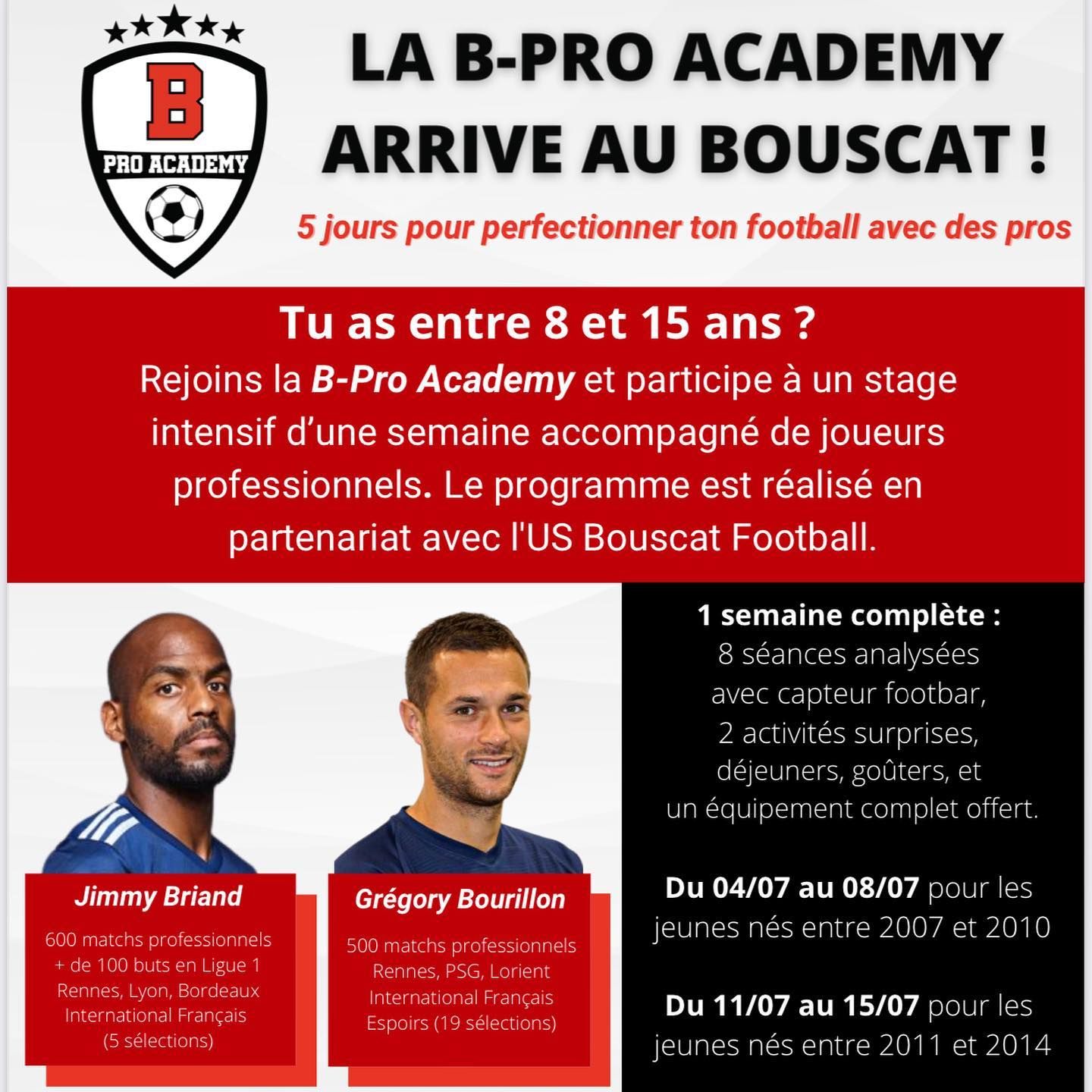 En partenariat avec B-Pro Academy de Jimmy Briand ( Joueur Girondins de Bordeaux ) et Greg Bourillon (ancien joueur PSG), des stages d’été seront organisés pour les jeunes entre 8 et 15 ans ⚽️